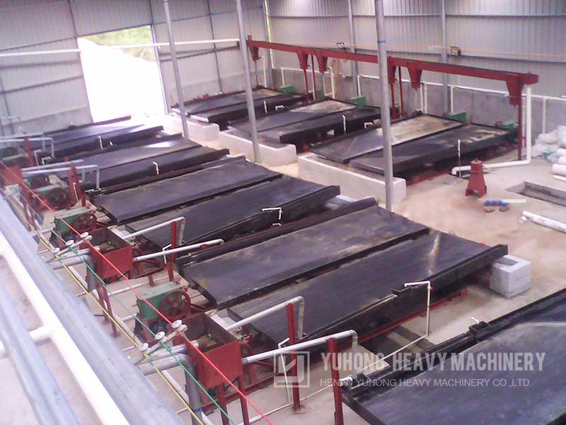 摇床选矿是在一个倾斜的床面上借助机械石板对称往复运动和薄层斜面水流等联合作用,使矿粒在床面上松散分层,分带,从而使矿物按密度不同来进行分选的过程