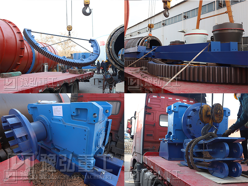 豫弘重工煤泥烘干机设备配件装车发货现场