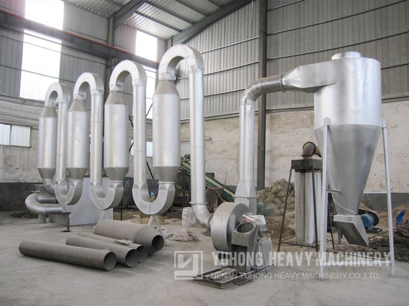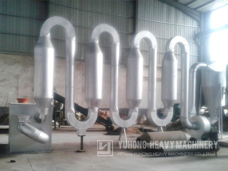 2、气流烘干机干燥时间短:物料与空气的接触时间极短,干燥时间一般在0.5~5秒,对于热敏性或低熔点物料不会造成过热或分解而影响其质量。