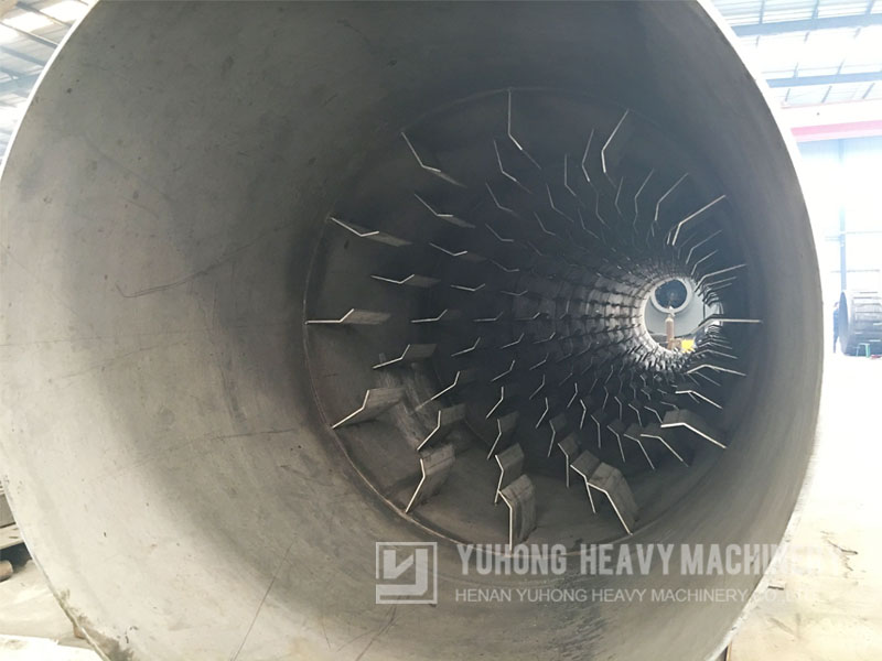 膨润土的烘干机根据膨润土的具体特性,分析了烘干机的结构对膨润土的产量、质量等影响而设计的。根据膨润土物料的特点,就如何提高物料填充率与延长物料在筒体内停留时间等问题对烘干机进行了全面技术改造, 采用新型组合式扬料装置,使物料无风洞现象,以达到加大膨润土颗粒与热风的接触面积的目的,让膨润土能够充分换热,脱水;提高热利用率,而且提高了产量;依据出料的粒度需要,加链条或短钢管,起传热、粉碎、阻气流的作用,筒内增加了板面链条和悬挂链条,这不仅增强其热传递性而且有效地防止扬板粘结,增强对物料的破碎功能,使较大球团难以形成。在同等投资的条件下,改进烘干机的优势已经非常明显。